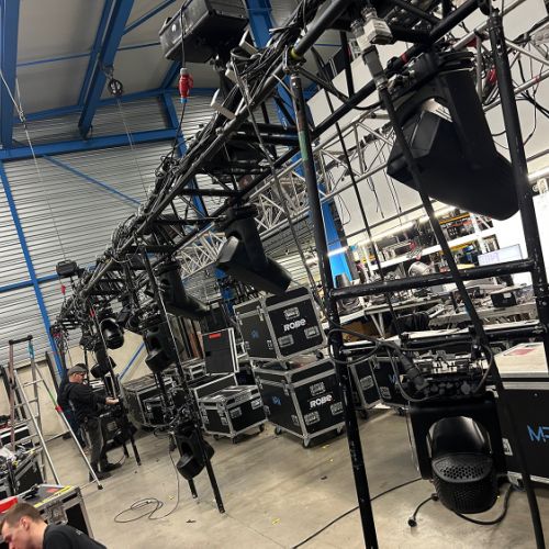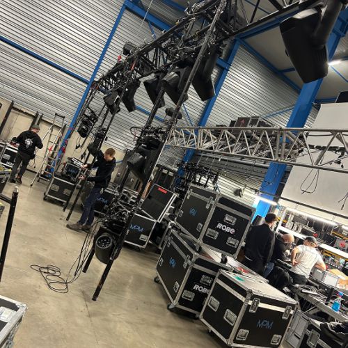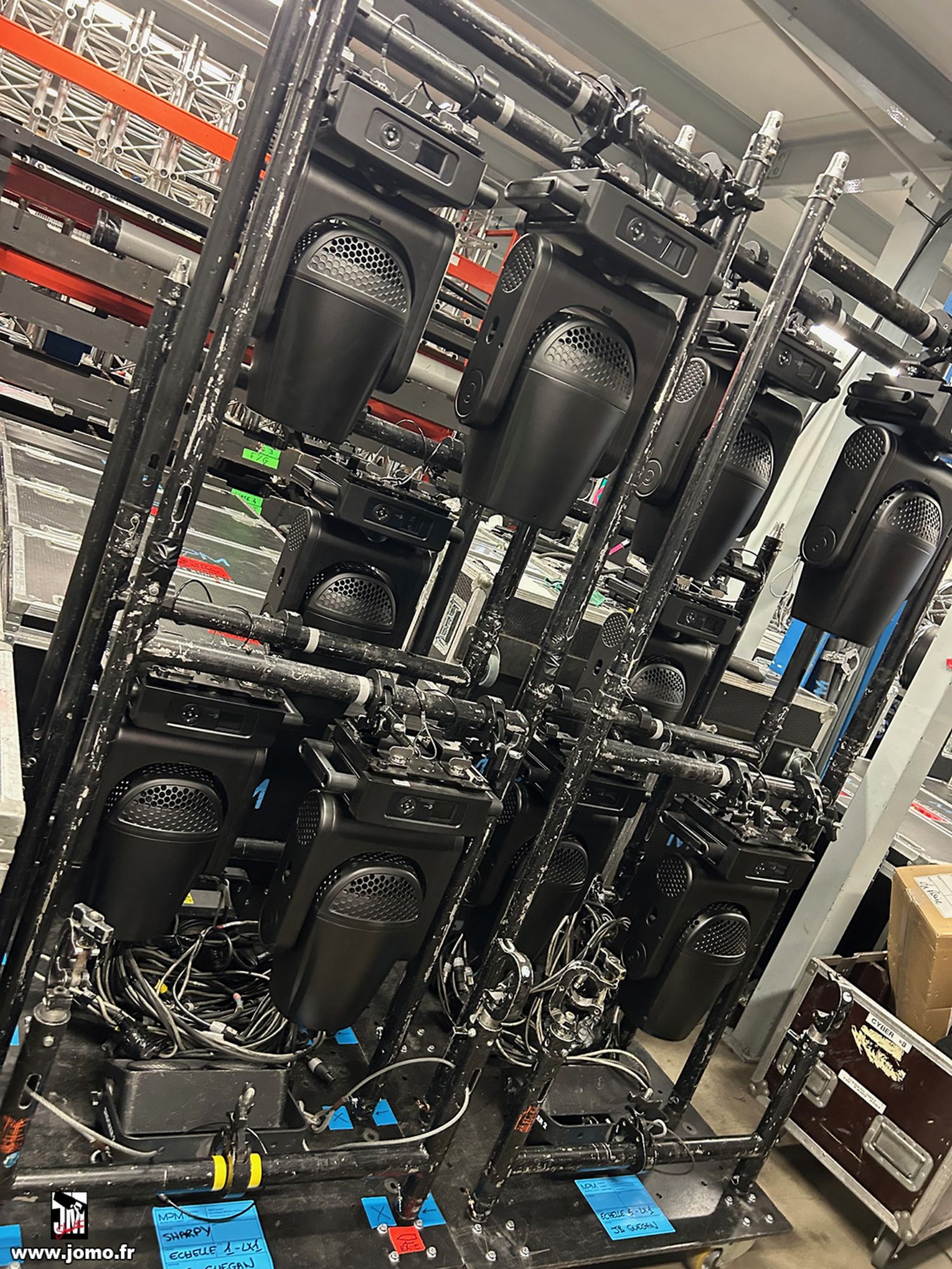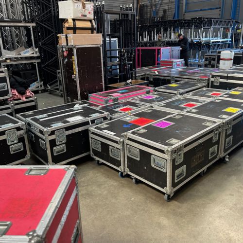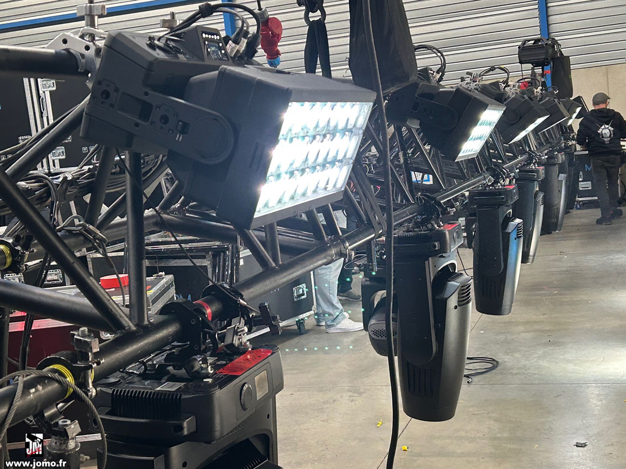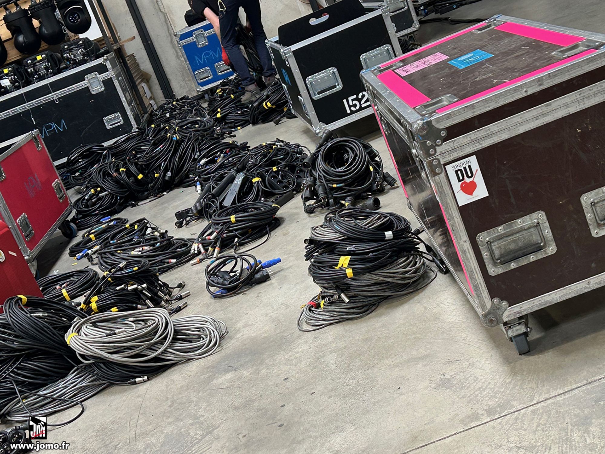 Quelques images de préparatifs chez le prestataire MPM (à Woippy près de Metz), avec l'etiquettage, préparation de torons, compte de câblage, d'équipement, de projecteurs, etc... en vue de la tournée de Zeniths de Jean-Baptiste GUEGAN "Johnny, le show d'une vie".