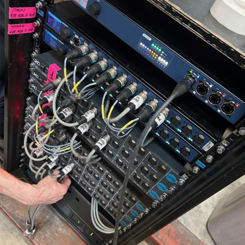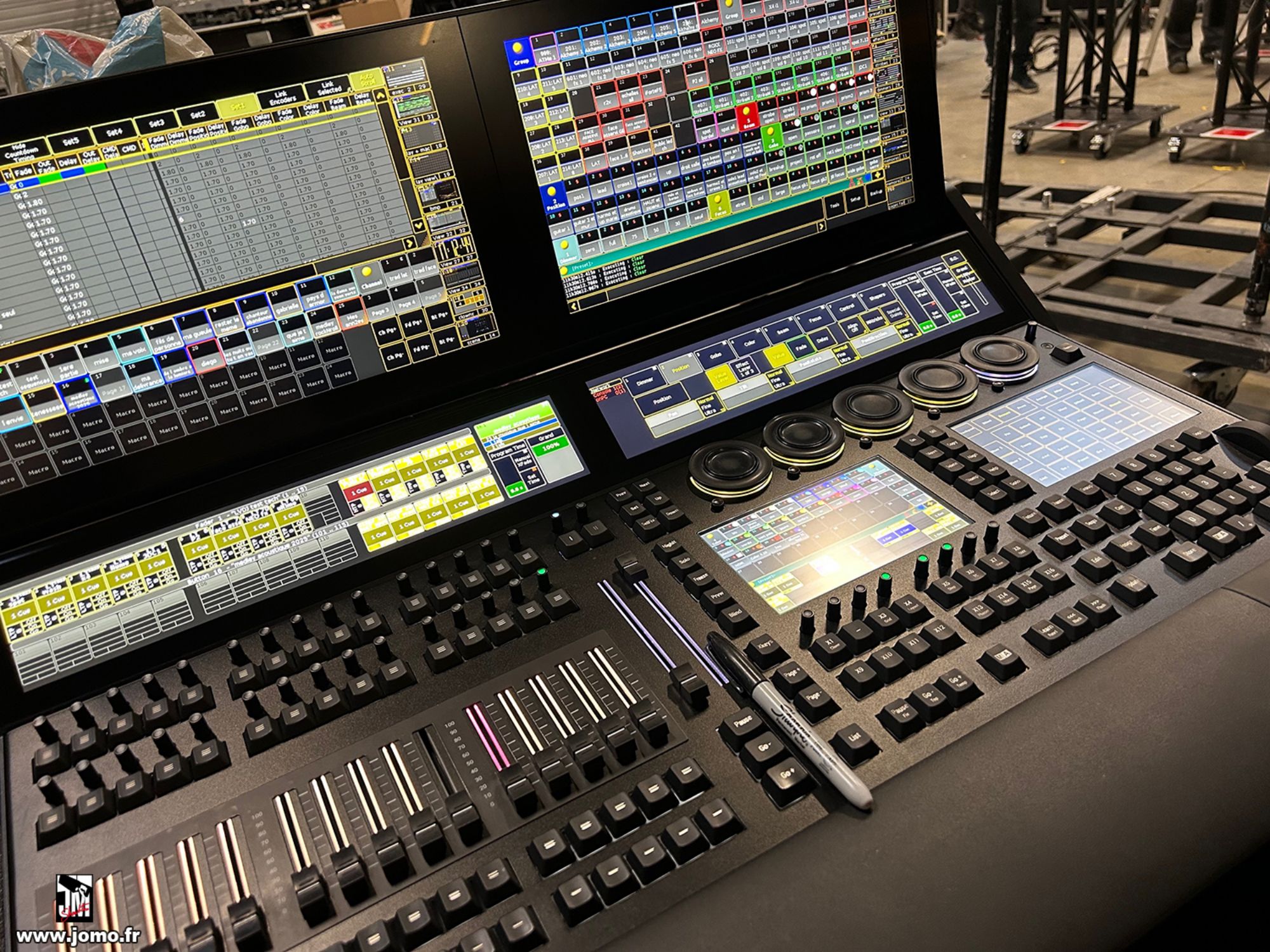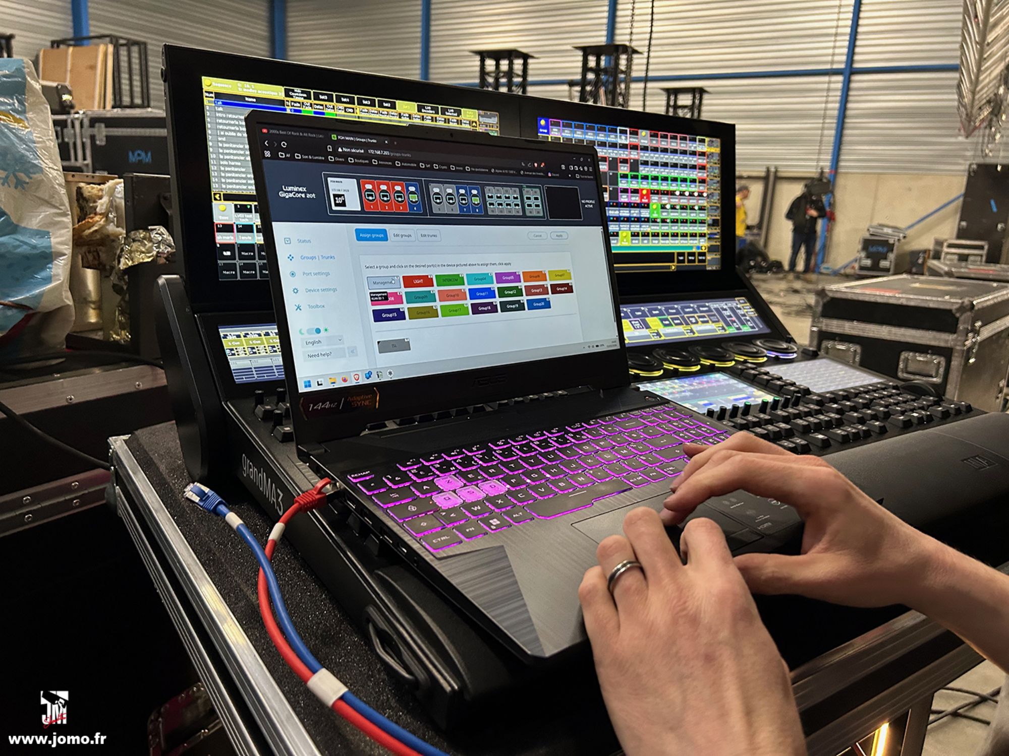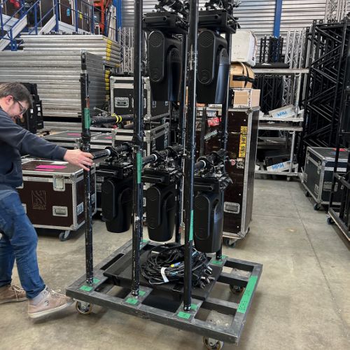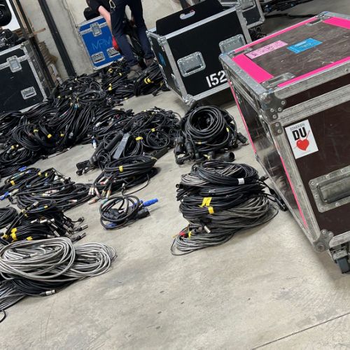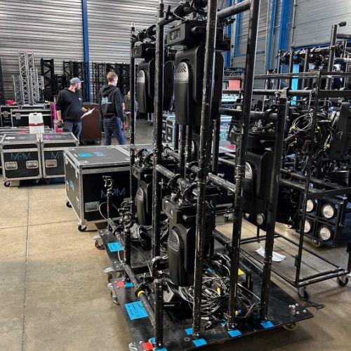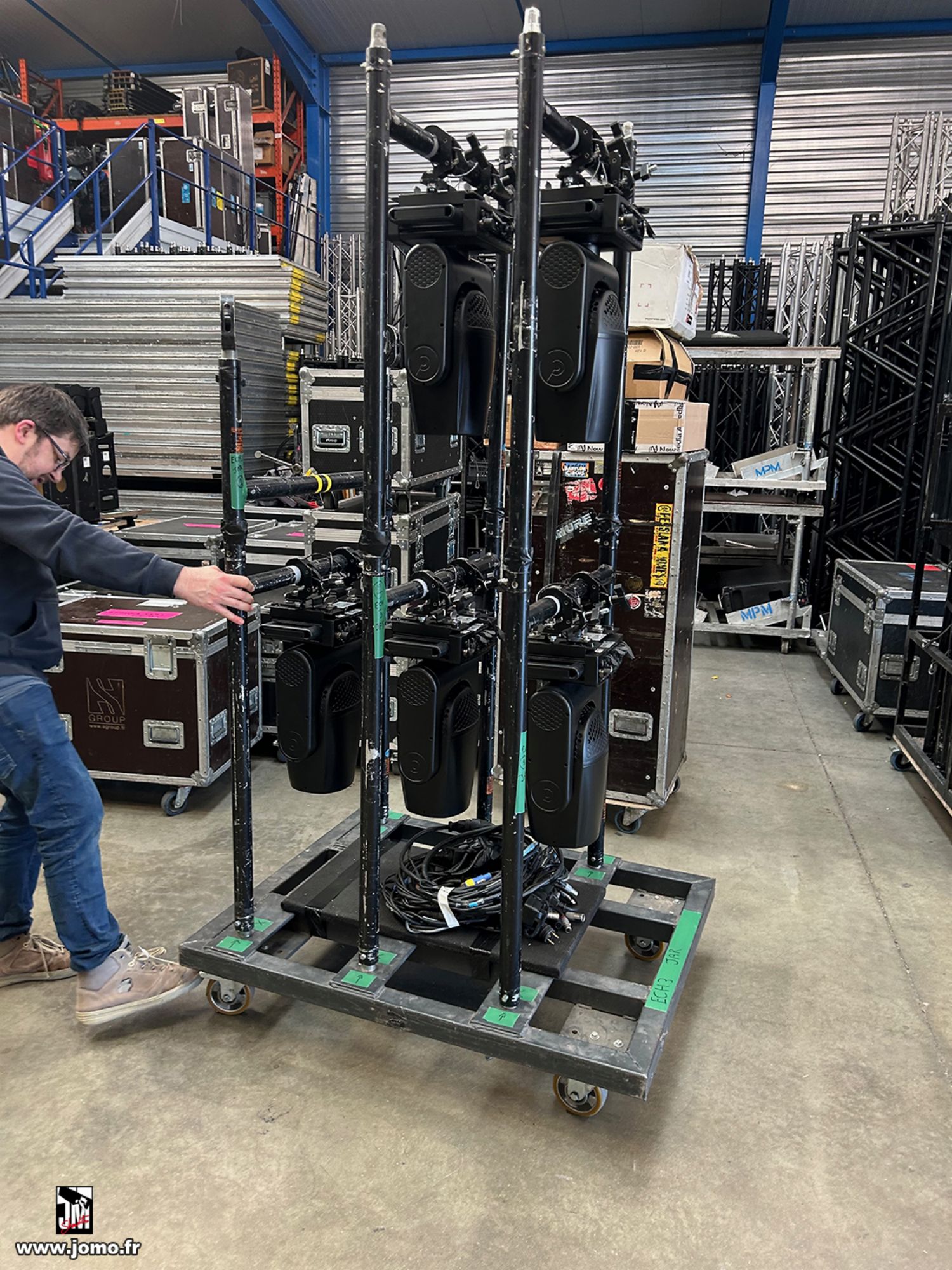 Quelques images de préparatifs chez le prestataire MPM (à Woippy près de Metz), avec l'etiquettage, préparation de torons, compte de câblage, d'équipement, de projecteurs, etc... en vue de la tournée de Zeniths de Jean-Baptiste GUEGAN "Johnny, le show d'une vie".
