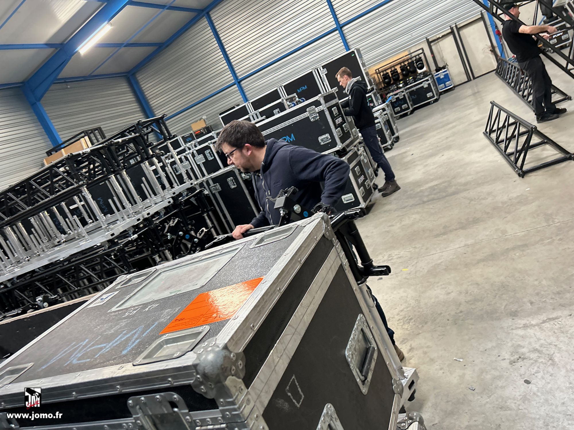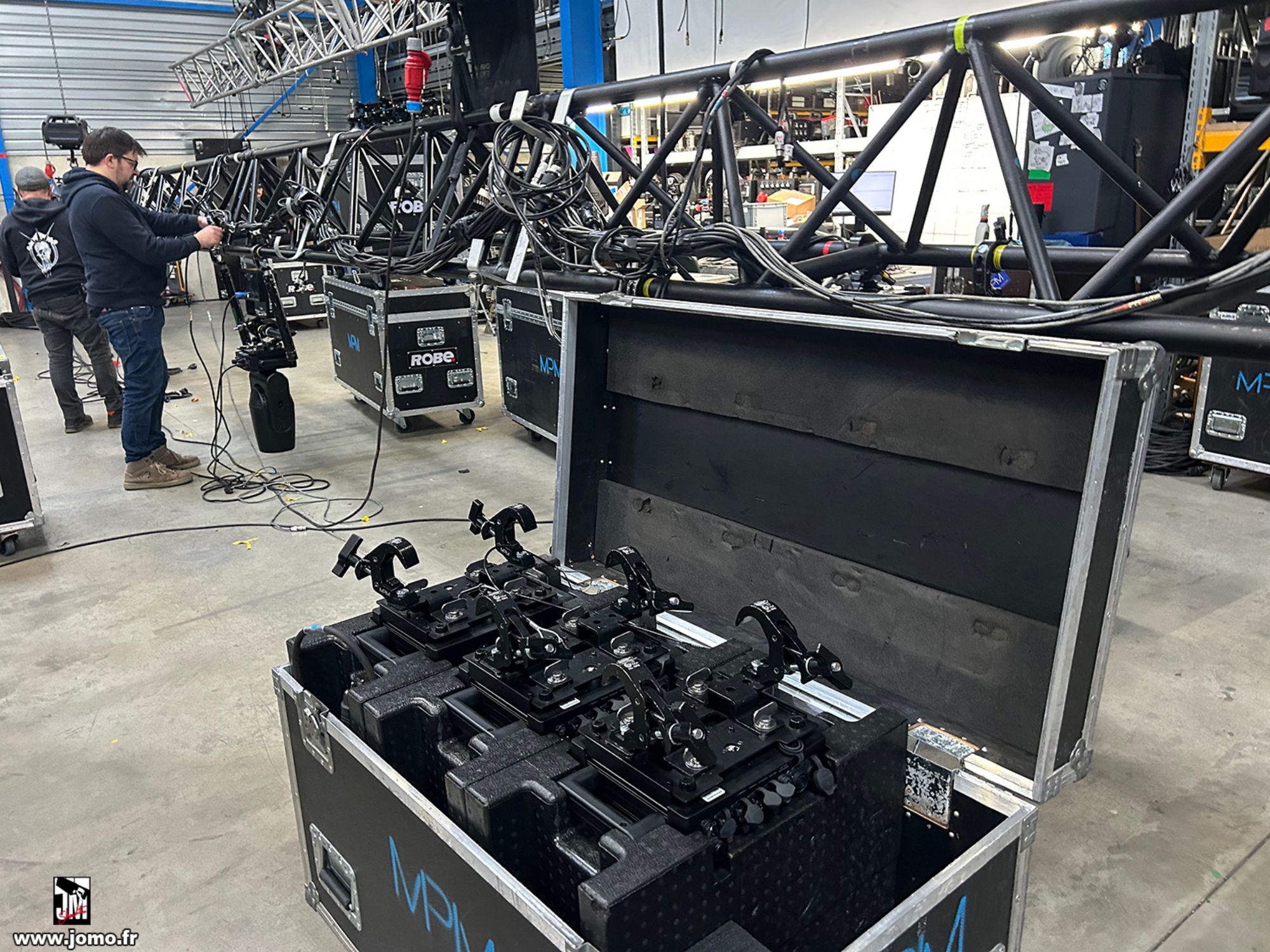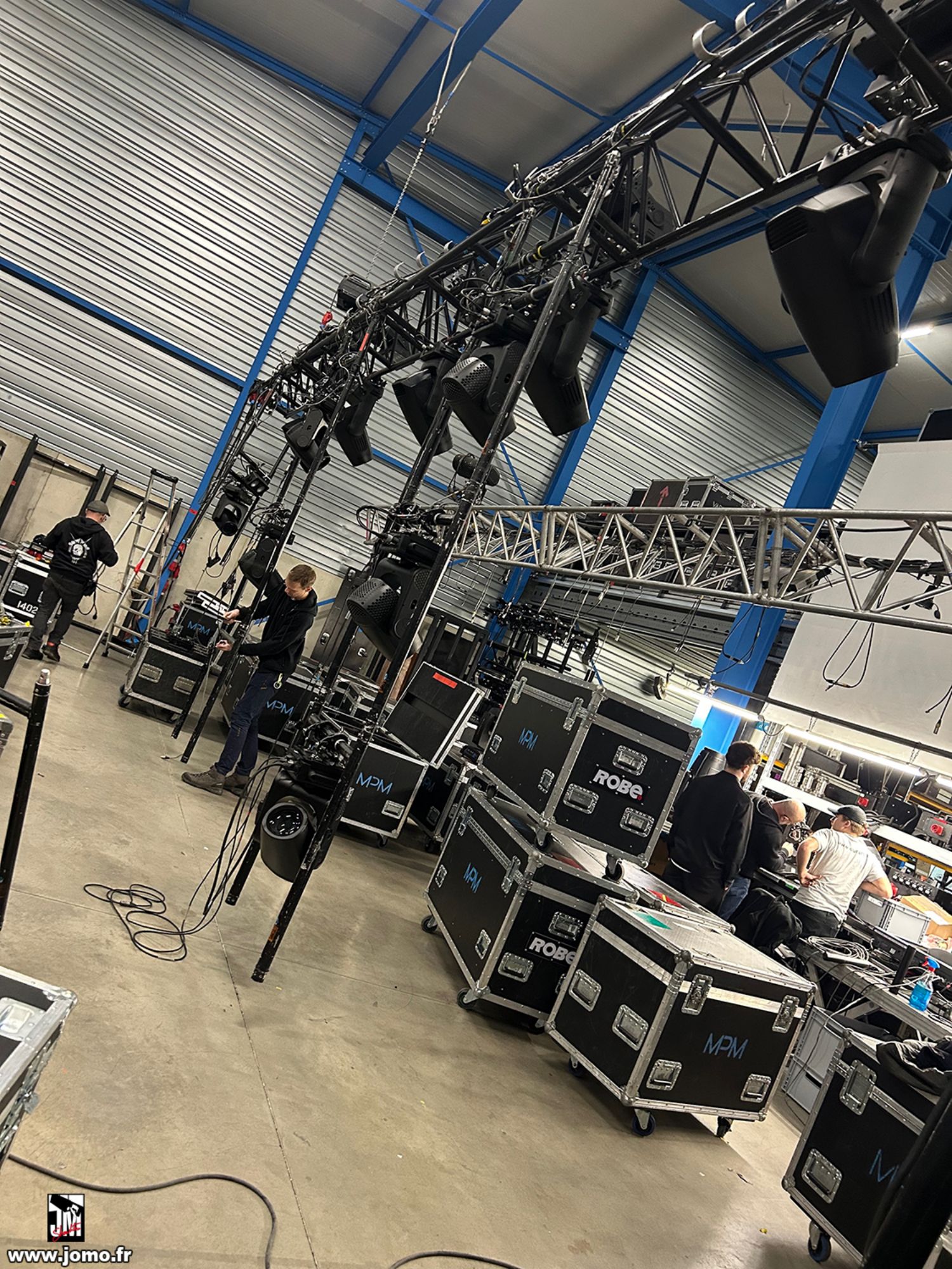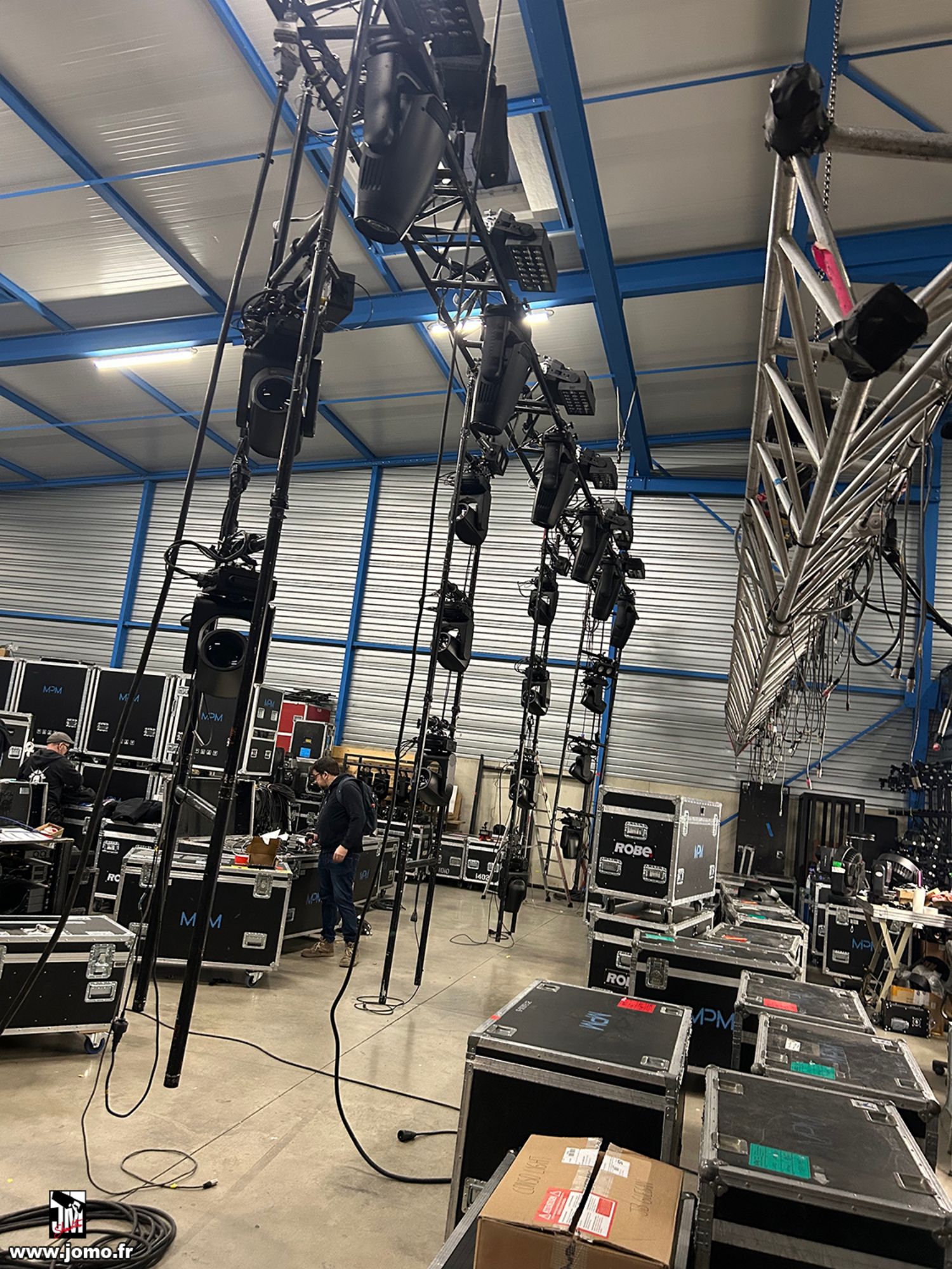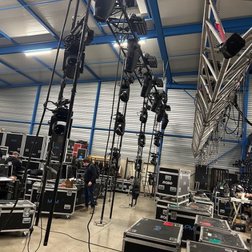 Quelques images de préparatifs chez le prestataire MPM (à Woippy près de Metz), avec l'etiquettage, préparation de torons, compte de câblage, d'équipement, de projecteurs, etc... en vue de la tournée de Zeniths de Jean-Baptiste GUEGAN "Johnny, le show d'une vie".