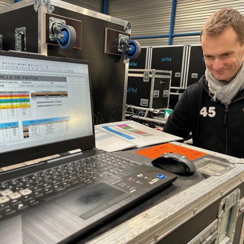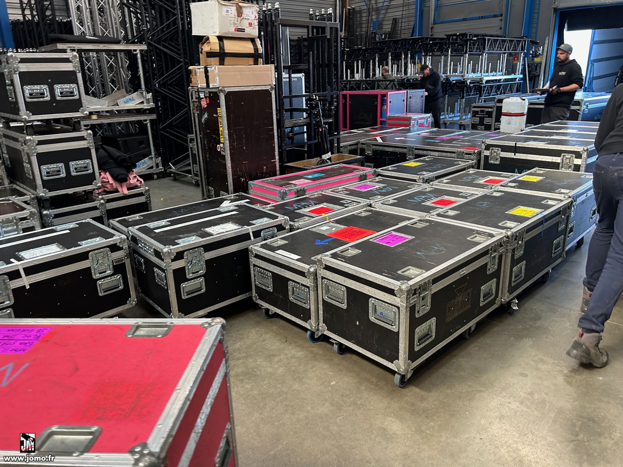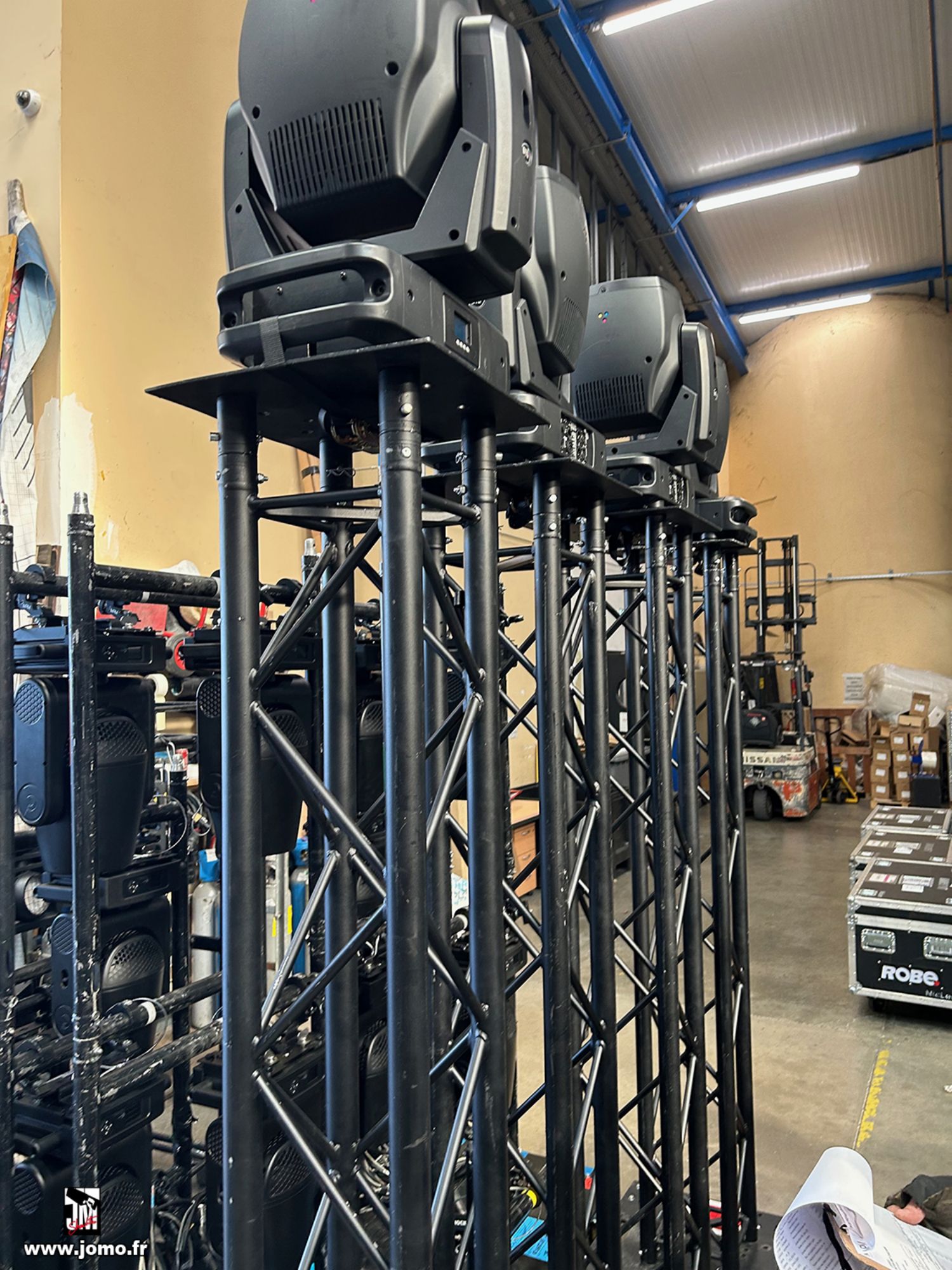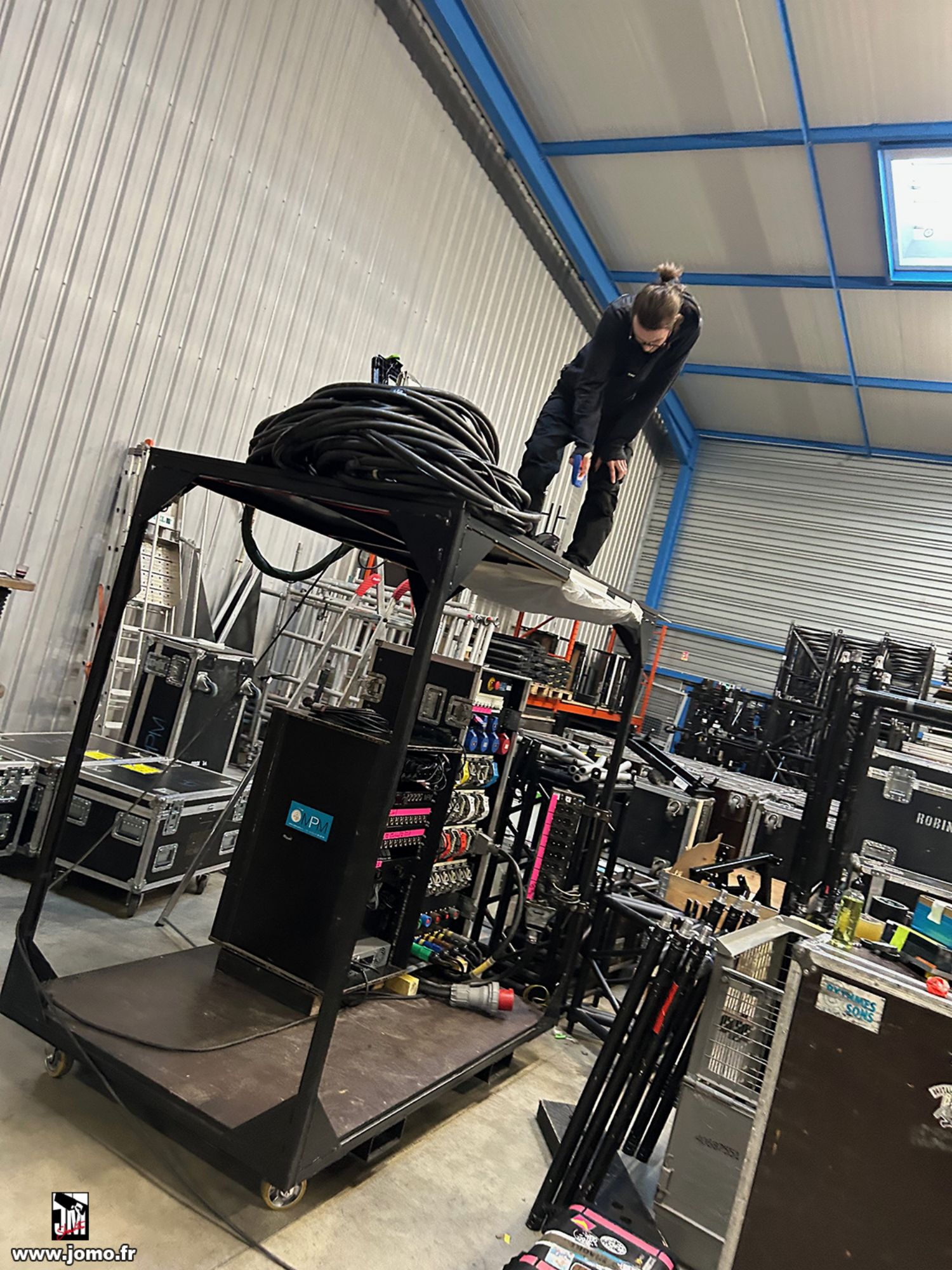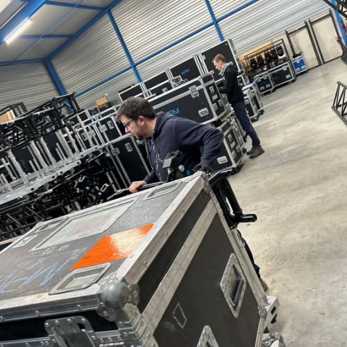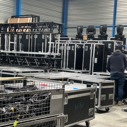 Quelques images de préparatifs chez le prestataire MPM (à Woippy près de Metz), avec l'etiquettage, préparation de torons, compte de câblage, d'équipement, de projecteurs, etc... en vue de la tournée de Zeniths de Jean-Baptiste GUEGAN "Johnny, le show d'une vie".