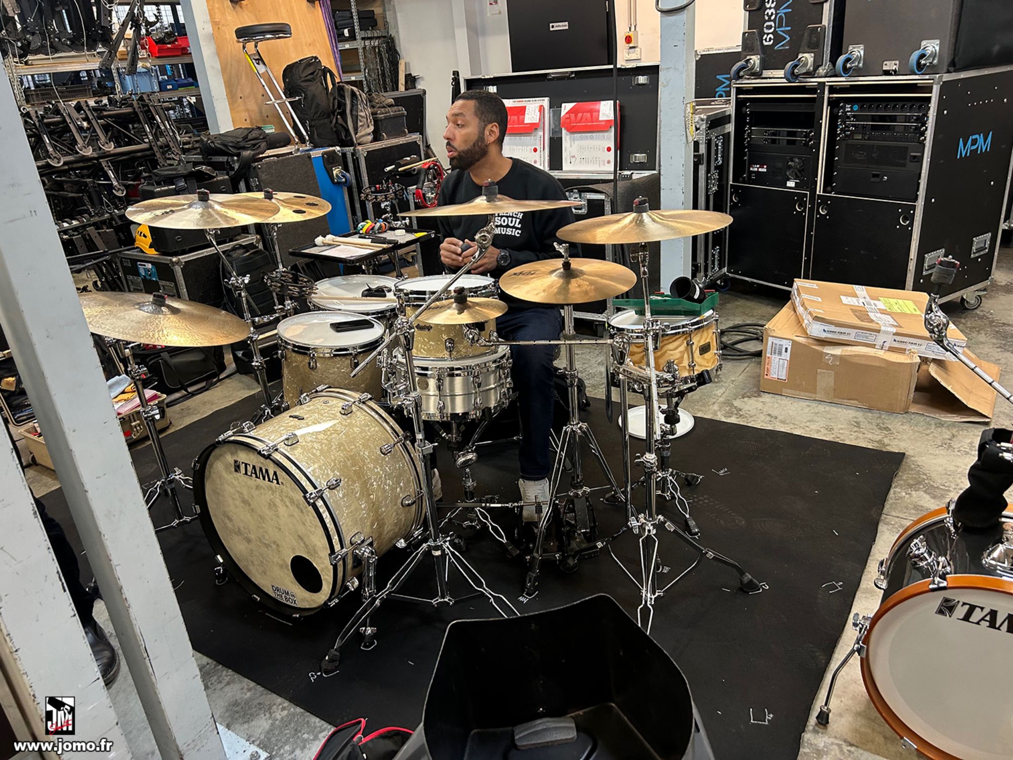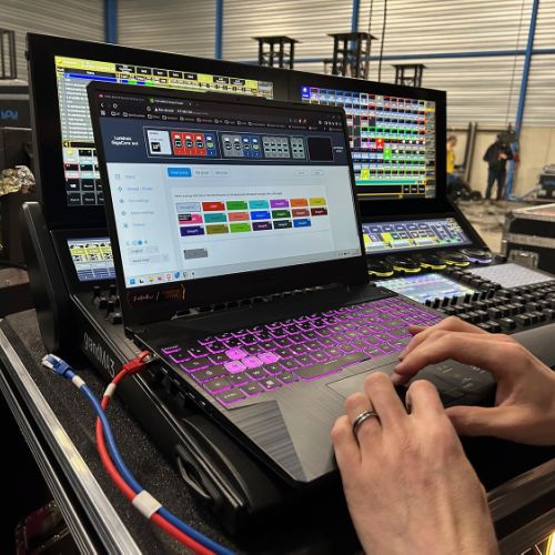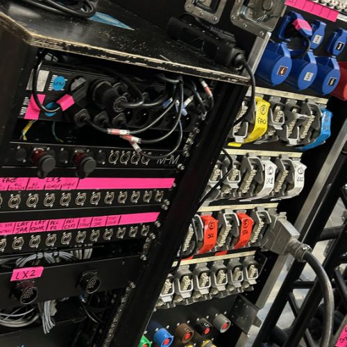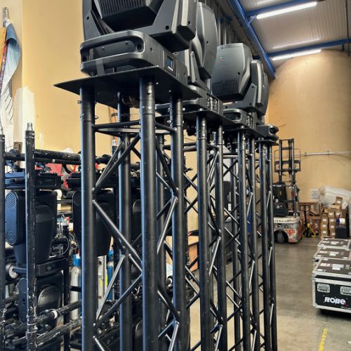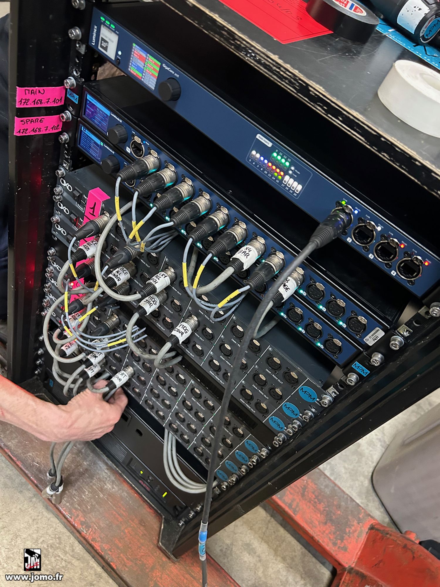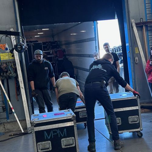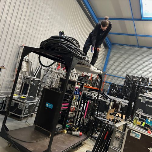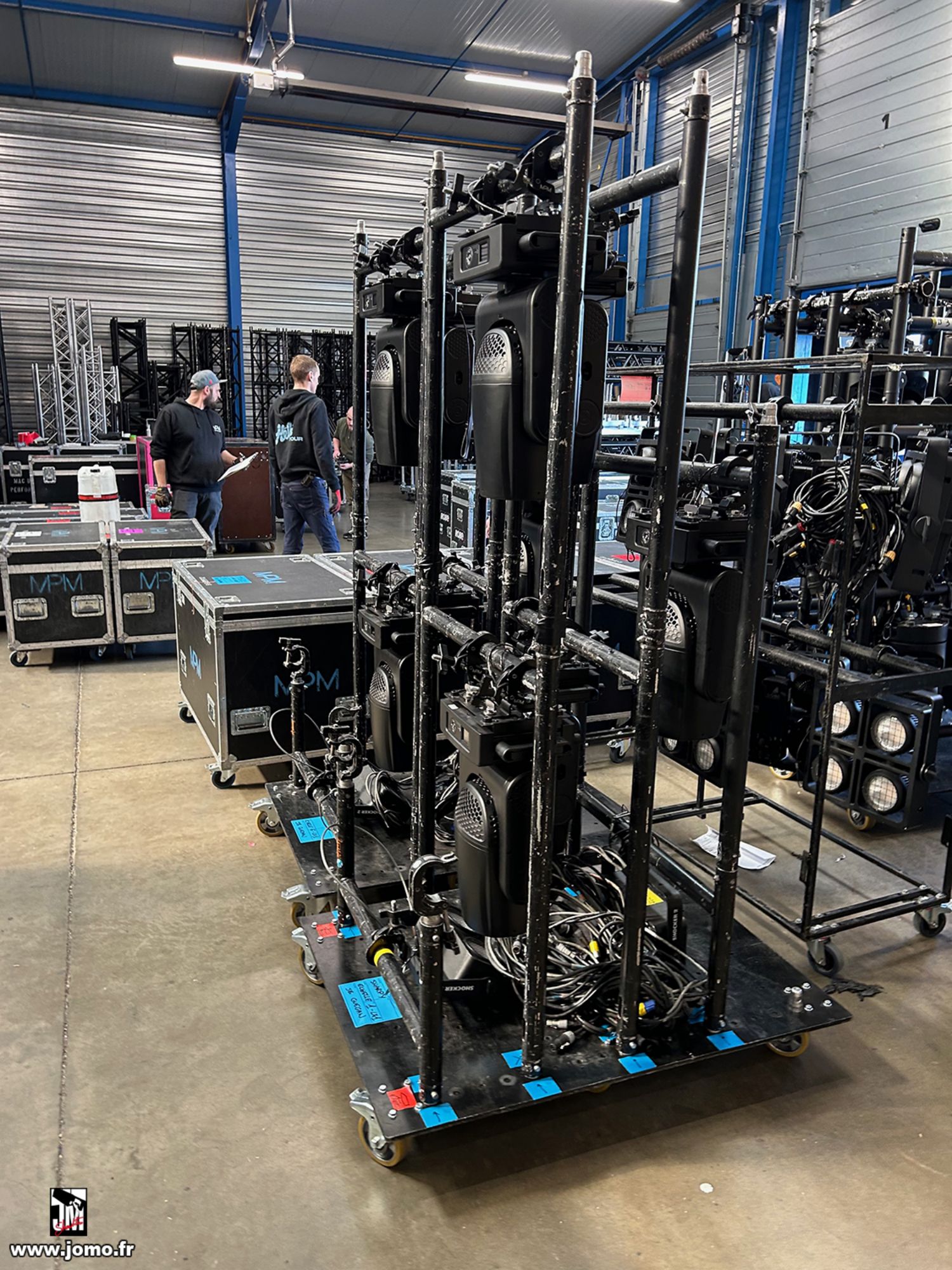 Quelques images de préparatifs chez le prestataire MPM (à Woippy près de Metz), avec l'etiquettage, préparation de torons, compte de câblage, d'équipement, de projecteurs, etc... en vue de la tournée de Zeniths de Jean-Baptiste GUEGAN "Johnny, le show d'une vie".