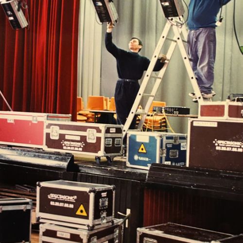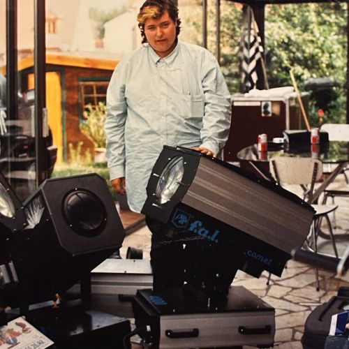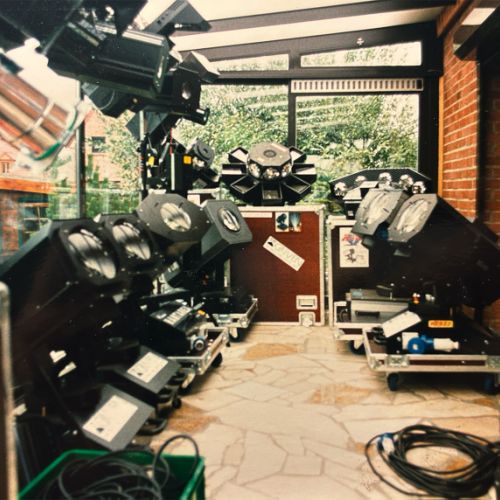Images d'archives, de mes débuts, mes premiers équipements, mes premières galères techniques, mes bricolages, ma passion pour les Sky-tracers (qui est devenue donc mon métier à la base), le laser, mes premiers motages lumières... avec ma première console (3 triplettes à interrupteurs scotchées ensemble...), mes premières rallonges électriques (oranges bien sur!), mes premiers scans, le macumba, l'orchestre Cocktail'S... bref...