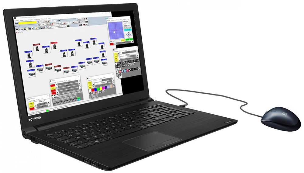 Le système LightJockey est un software et son interface DMX permettant de bénéficier d'un contrôle informatisé très simple pour piloter jusqu'à 100 fixtures depuis un ordinateur, sur un ensemble de 3 à 4 univers DMX.