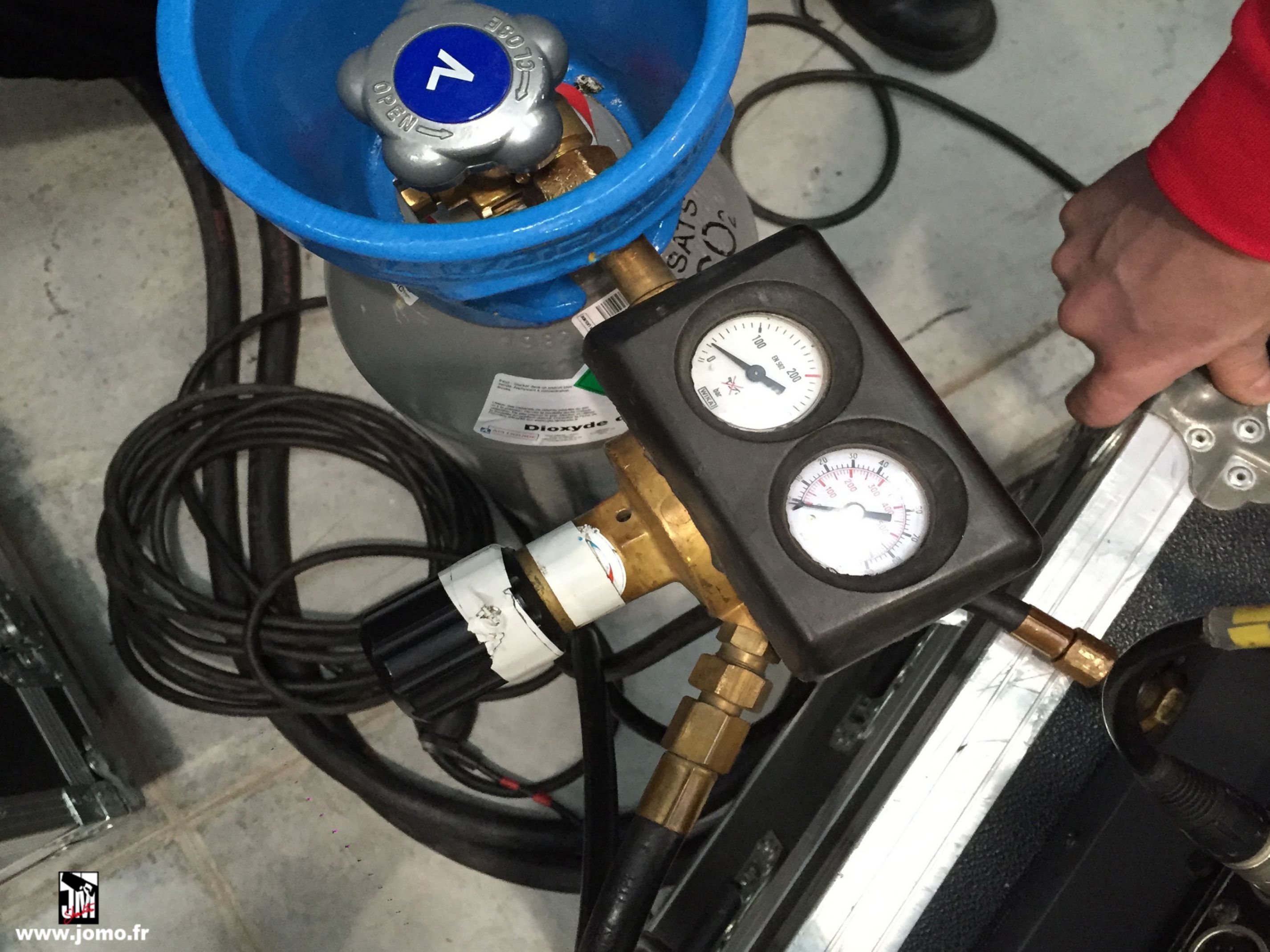 Règlage au manomètre, ou directement en DMX, suivant les modèles.