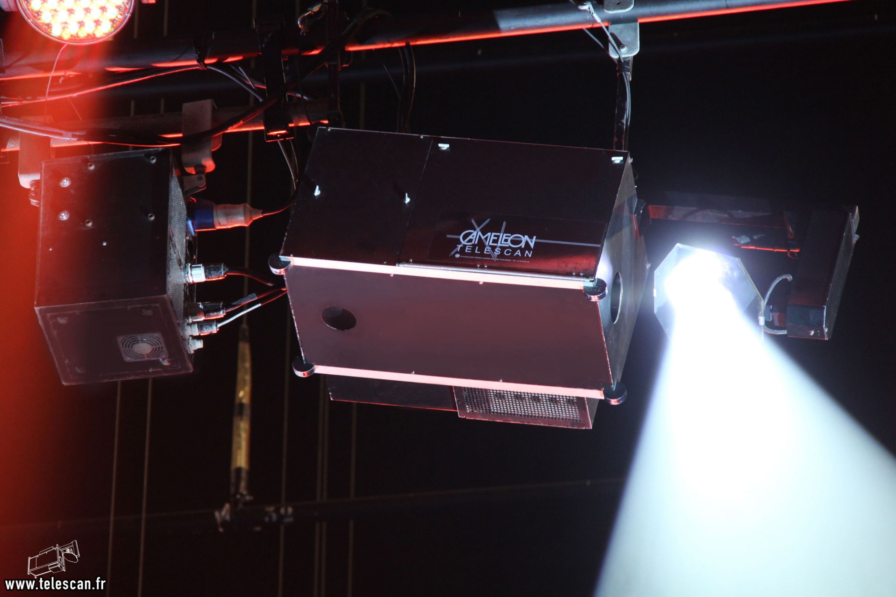 Machines exceptionelles et artisanales conçues par CAMELEON, les pionniers en matière de lumière asservie, fabriqués en France et internationalement reconnus pour leurs fonctionnalités et leur lumière remarquable, les Téléscans sont des projecteurs chargés d'histoire qui sont à l'origine de ma passion et de mon métier d'éclairagiste.